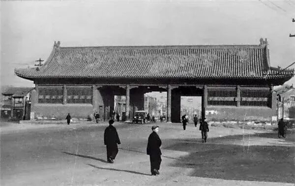 1953年,阜成门内大街历代帝王庙前“景德街”东牌楼(东向)。远处可见西四牌楼。