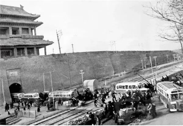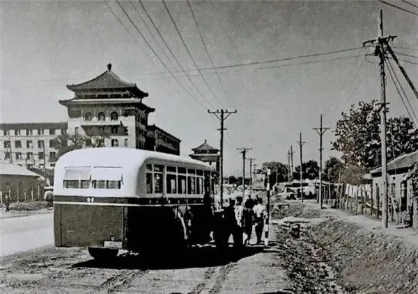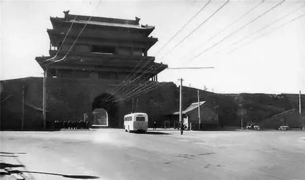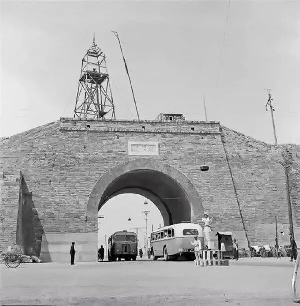 1952年,德胜门箭楼西北面。大鼻子公共汽车应是郊区线44路(344路前身),德胜门开往清河。