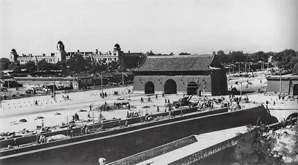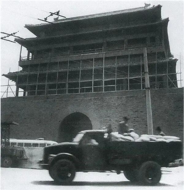 1953年,永定门瓮城已于1951年拆除,1953年春又在城楼西扒开一豁口。