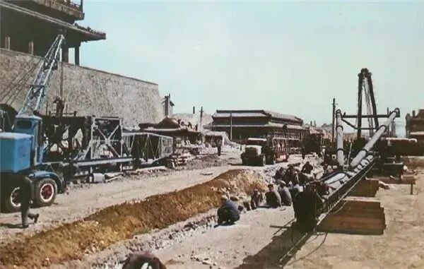 1968年,正阳门城楼前,北京地铁2号线(环线)前三门地面工程正在施工。