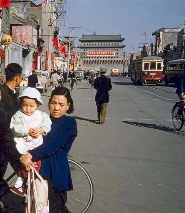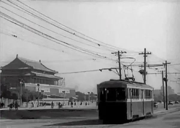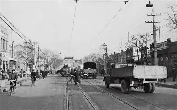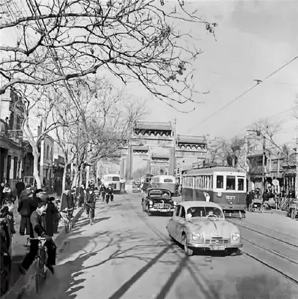 1952年,西交民巷东口,振武牌楼还在。通行有轨电车1路,由永定门开往西直门。