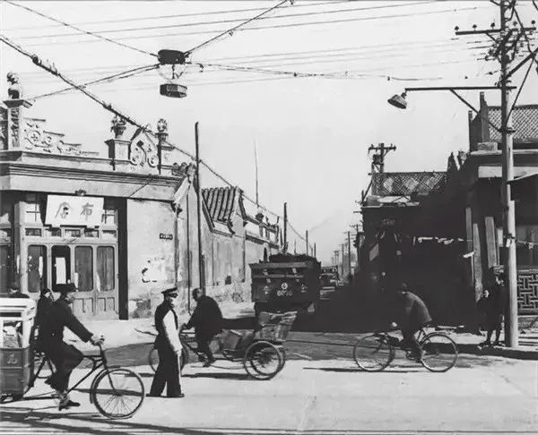 1953年,东四牌楼路口“大市街”牌楼南(北向)。