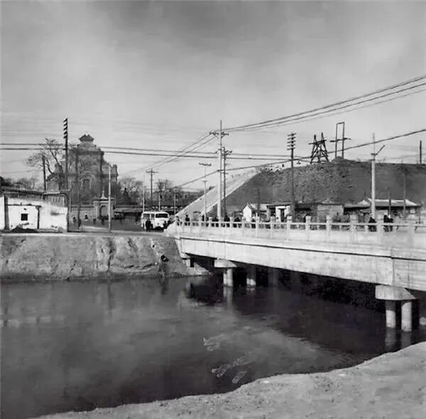 1952年,宣武门护城河桥头,宣武门外大街香炉营,上斜街路口。