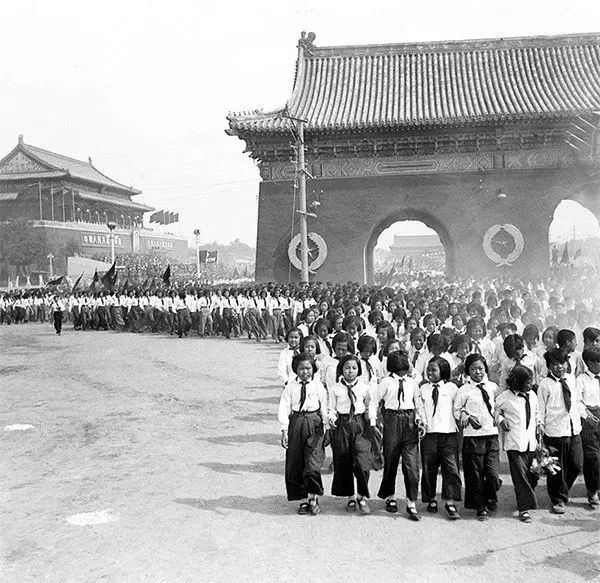 1951年,国庆节阅兵游行活动完毕散场,参加完广场集会的少先队员走过长安右门。