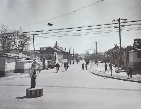 1950年,东长安街东口(东单路口)西北向,可见路口中心交通岗,东单北大街和东单市场。