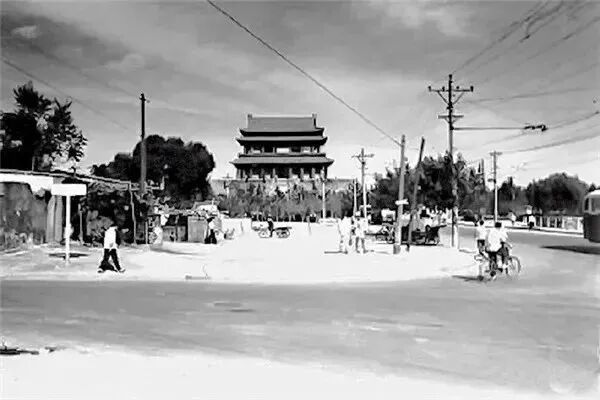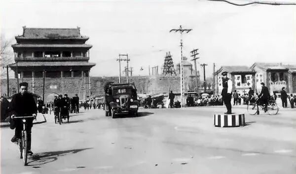 1954年,复兴门(门洞)内顺城街路口,有一个交通岗(北向)。