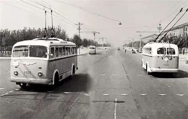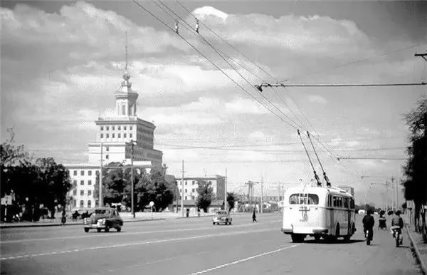 1962年,朝阳门外大街,街道上行驶的无轨电车是9路,由广安门开往红庙。