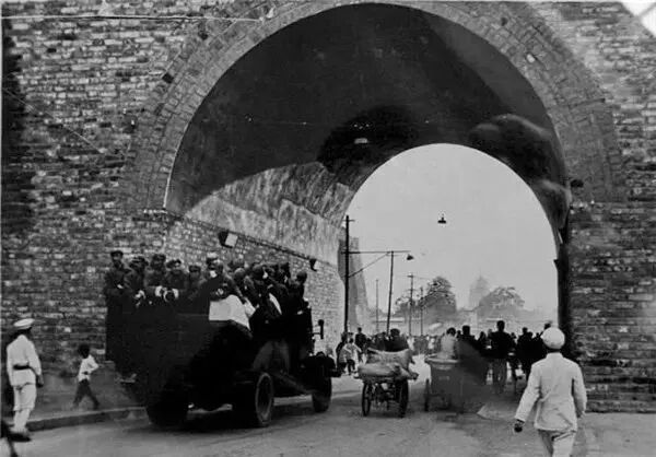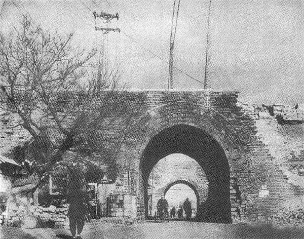 1954年,复兴门城门洞东面(城里),由此可知复兴门城门洞内外侧上方均镶刻有城门石匾。