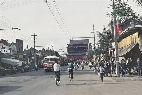1968年,地安门外大街(鼓楼前大街)。南行的是8路公共汽车,由黄寺开往体育馆(北京)。