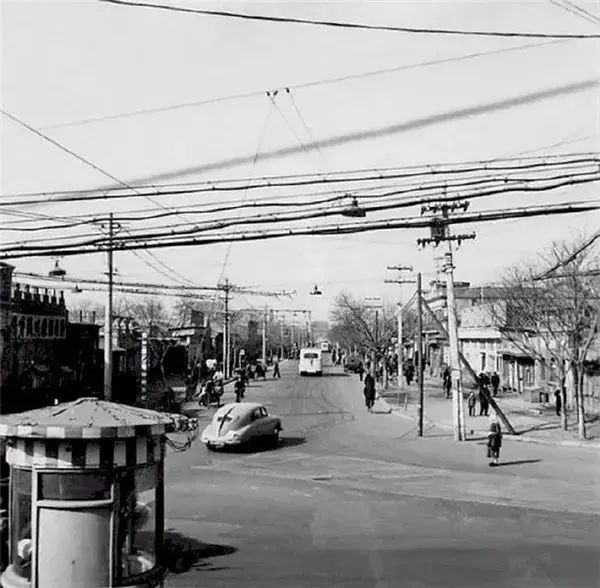1952年,西单路口东向。向东拐进西长安街的有轨电车是西线3路。