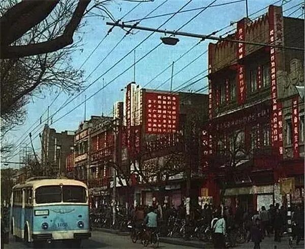 1962年,东四北大街,东四十条路口北向。南行的无轨电车应该还是京一型单机的10路,过两年就不走此路,改行木樨地开往永定门火车站了。此街经过的无轨电车就仅剩6路了。