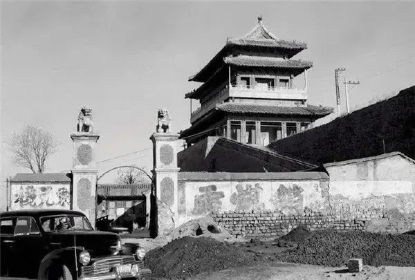 1950年,安定门箭楼南面及瓮城内真武庙。