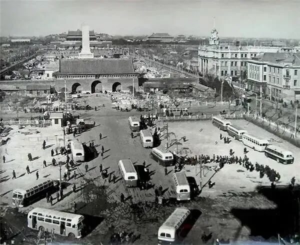 1954年,北京站(前门东车站),站前广场,道路和停车场。