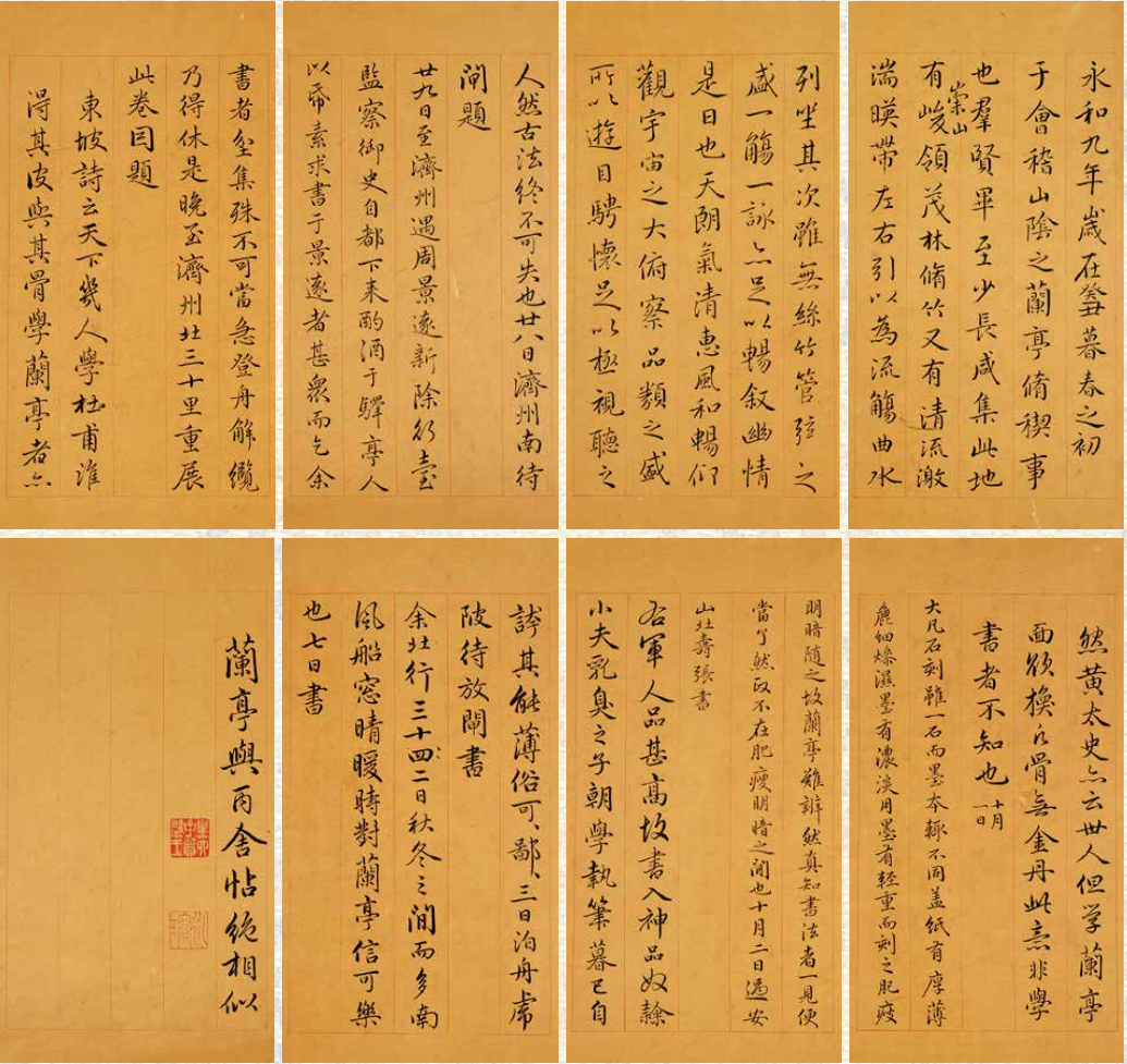那彦成29.5×131cm;那彦成29.5×130cm;彭邦畴26×65cm;李宗瀚17.5×57cm;邓廷桢22.5×11.5cm;法式善20.5×64.5cm;李宗翰题二22×10cm;吴嵩梁22×144cm;佚名一22×9cm;佚名二 22×8.5cm。