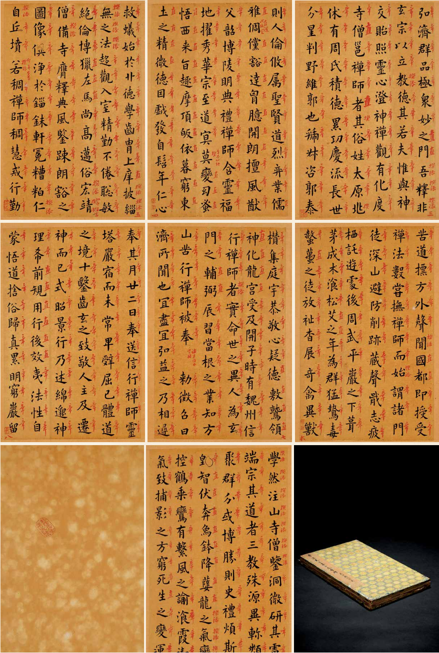 鉴藏印:纳喇桂祥、虞人、汉阳万中立、西蠡经眼说明:前后空白页分别钤有“乾隆年仿金粟山藏经纸”、“嘉庆年仿金粟山藏经纸”印记。桂祥、万中立、费念慈鉴藏。桂祥(1849-1913)叶赫那拉氏,慈禧的弟弟,爵位三等承恩公,镶黄旗满洲副都统。