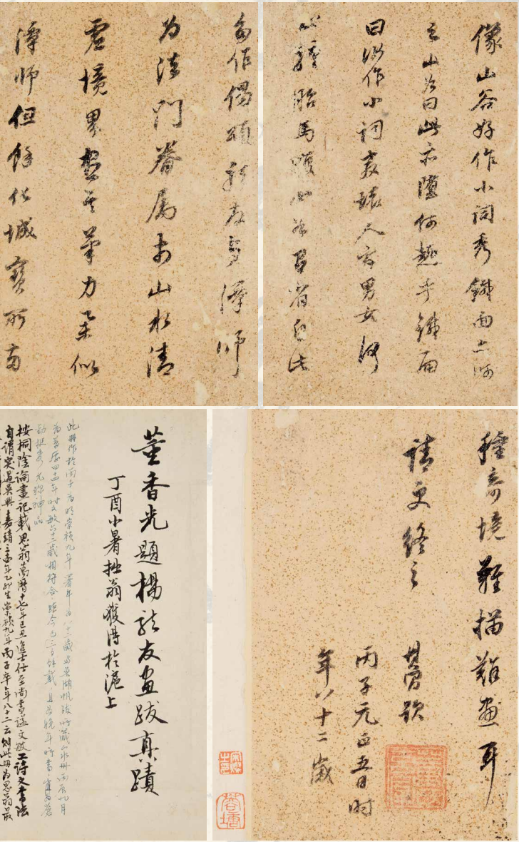 题识:蝴蝶。蜜蜂。蝉。萤。自题宸萼集。颜氏家训二十篇。北平翁方纲书。苏斋试砚。丙辰秋八月廿有四日,书似默斋二兄大人正。翁方纲。