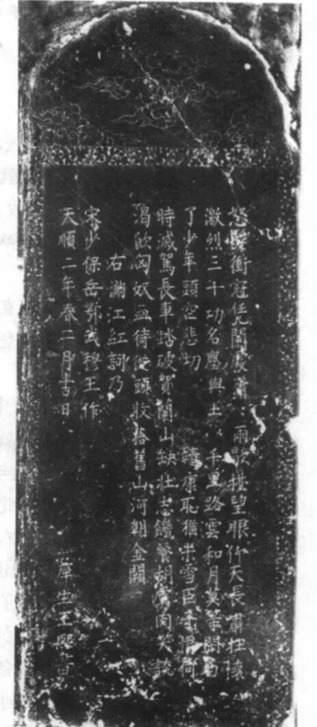 天顺二年(1458年),王熙书写岳飞《满江红》词石刻,这是目前所见岳飞《满江红》词出现的最早年代和实物。
