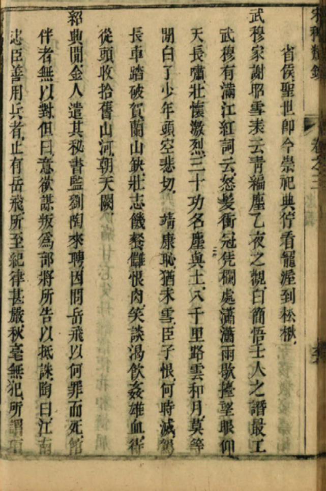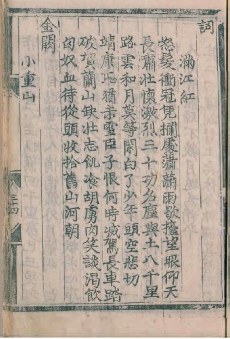 日本国会图书馆藏明成化刻本《精忠录》所刊岳飞《满江红》词。