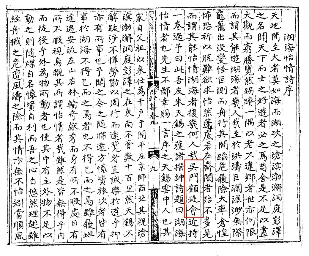 2.卷前抄录《兰亭序》全文,无款,钤“顾氏廷会”印。据明代王(1424-1495),景泰二年进士,成化间官南京户部尚书、吏部尚书等职)在其所著《思轩文集》卷九《湖海怡情诗序》中提到“吴门顾廷会近持一卷过予”可知,顾廷会为苏州人,大约活动于成化年间,与夏葵同时。