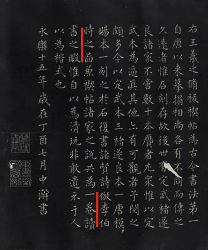 明代叶盛(1420-1474)云:“李伯时禊图,淳祐改元辛丑,庐陵曾宏父刻于其凤山别墅,今在绍兴,古意犹存,非诸处翻刻本可及。”