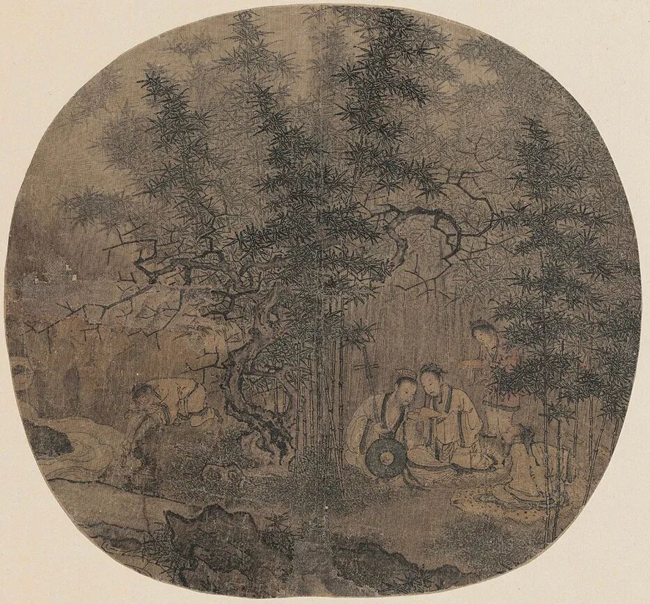 参考:宋 佚名 竹林拨阮图页故宫博物馆藏