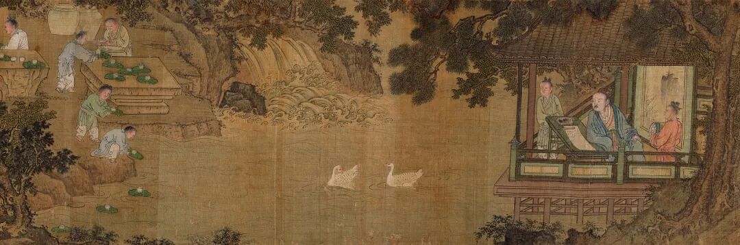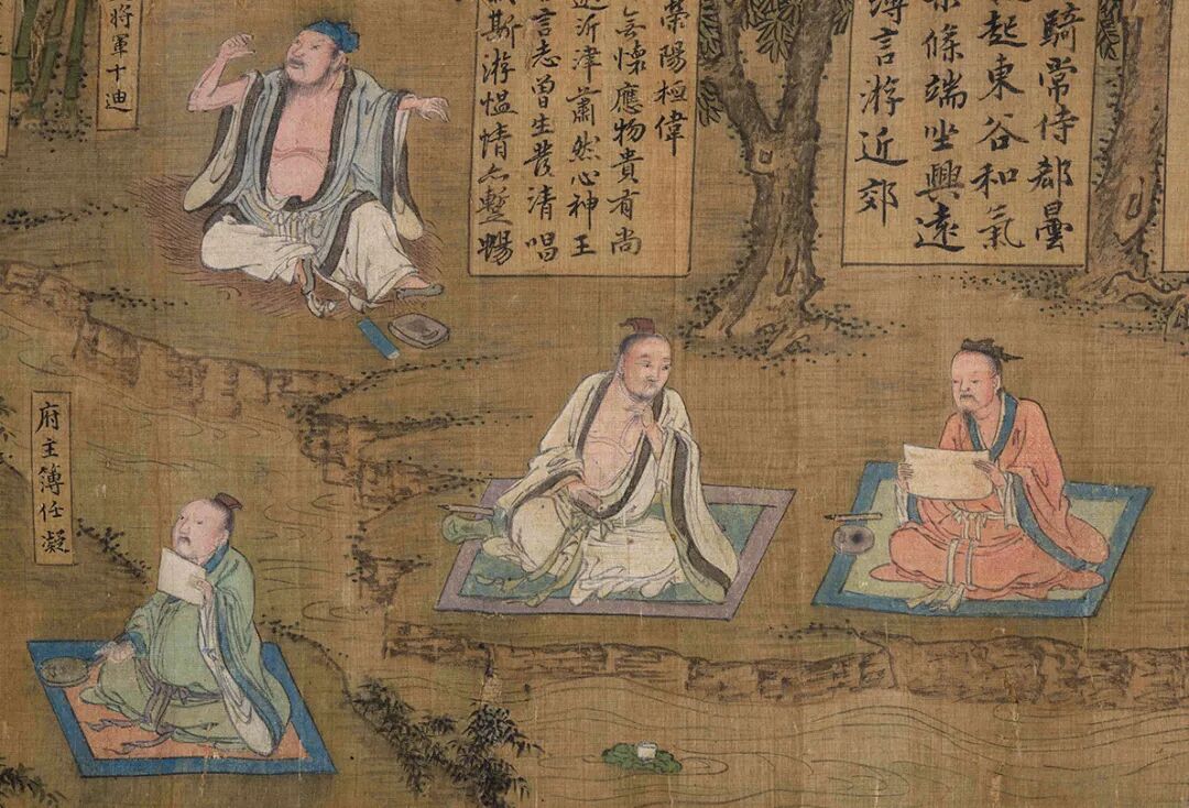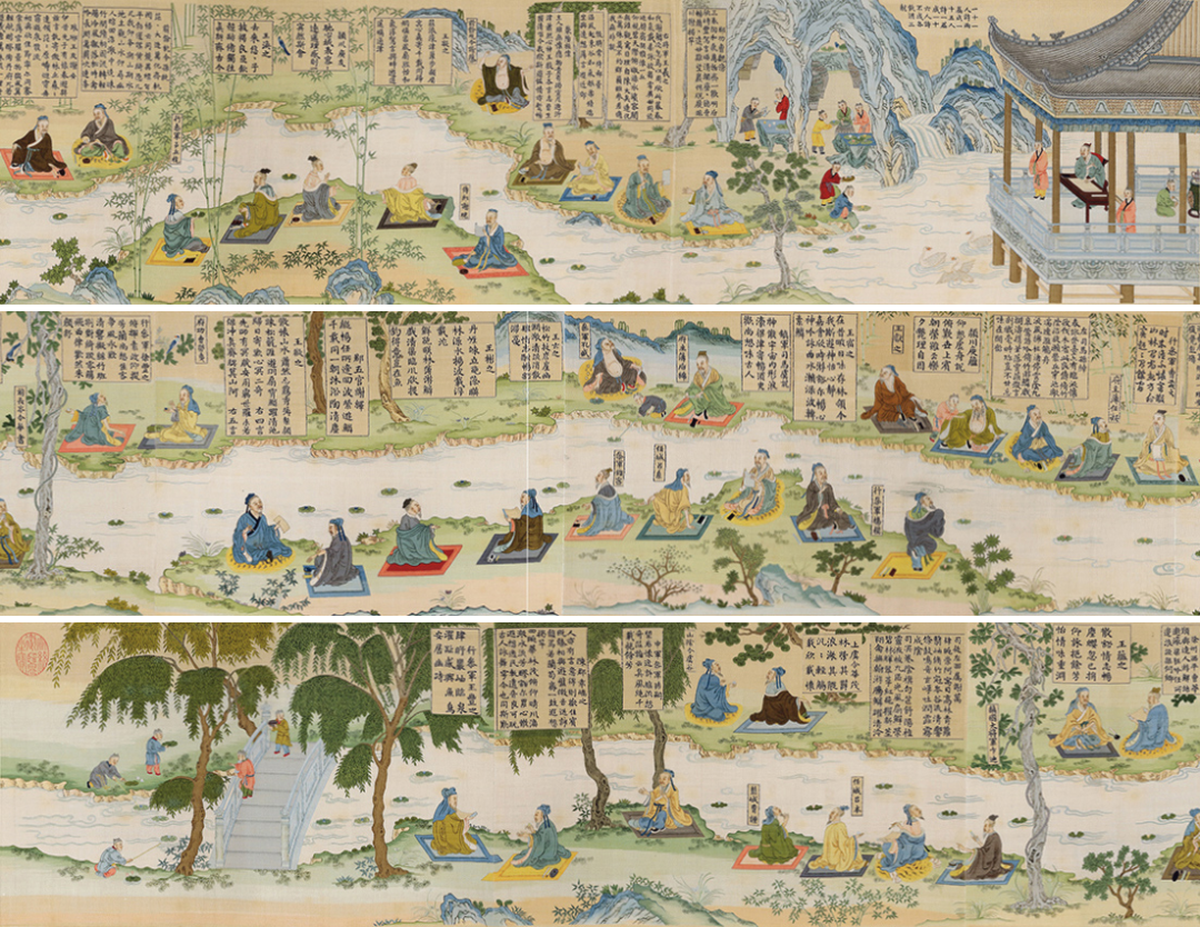 颍川庾蕴过酒而覆杯交睫不开,仆者撼之。……”展视夏葵这近七米长的曲水流觞图,充分表现出了古人流觞修禊的活跃气氛。