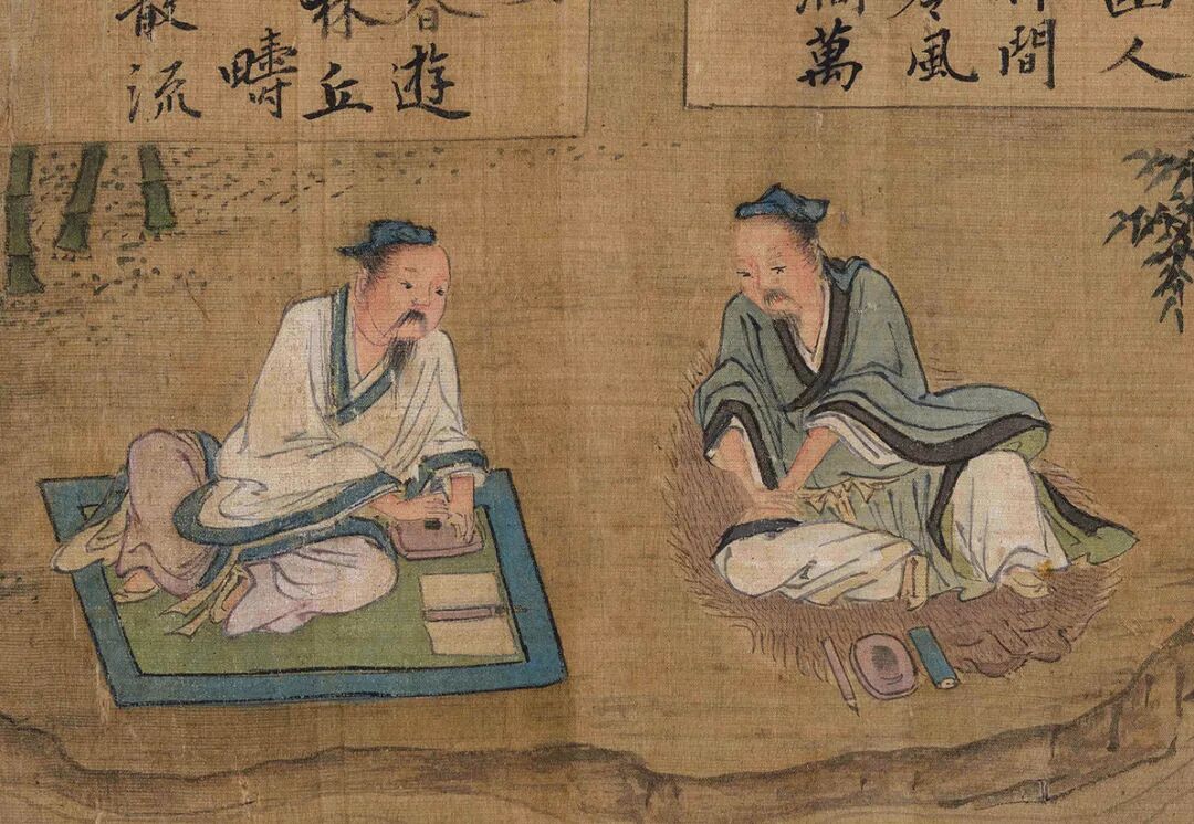 涧北二人,一据膝而问,一以手印地而听。