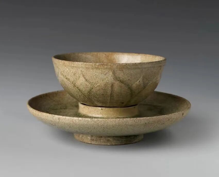 越窑青瓷莲瓣纹盖碗 韩国国立中央博物馆藏