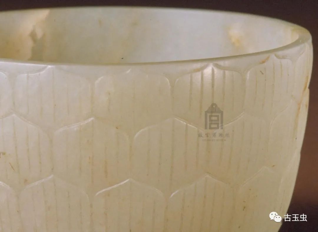 唐、宋时期,作此玉碗造型,或器壁饰莲瓣纹的金、玉、陶瓷器皿时有所见。此碗材质精美,碾琢细腻,造型古朴,器形小巧,是唐代存世不多的玉容器精品。