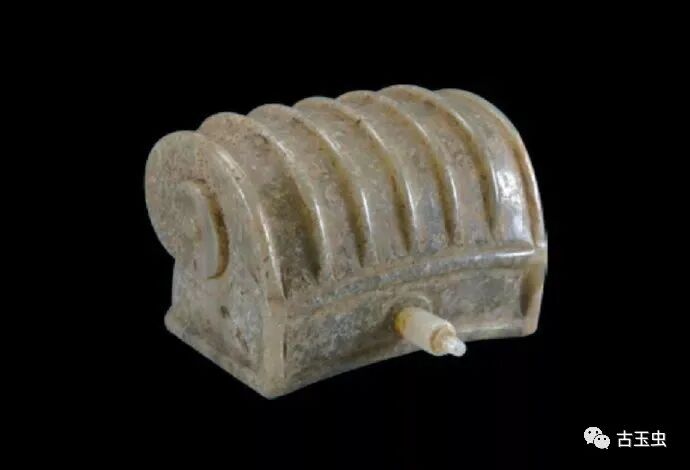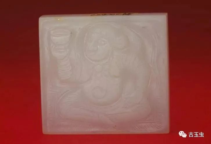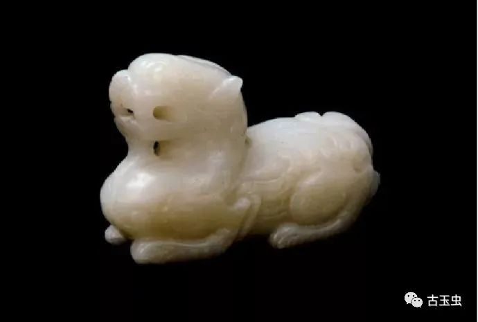 陕西西安法门寺地宫中出土有与此兽形象相同的唐代三彩作品,足证此作品为唐代所制。此作品可使我们了解唐代玉兽造型中肘部饰螺旋纹的状况。