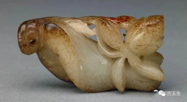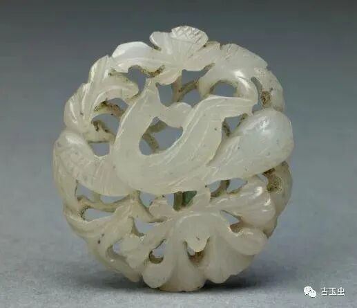 唐玉纹饰有卷云纹、卷草纹、连珠纹等,动物纹有龙、凤、牛、马、鹿、雁、孔雀、鹤等,有的飞鸟成双成对,植物纹有牡丹、石榴、莲花等,都是来自现实生活。由于与国外文化的交往,吸收外来文化,出现外来的造型与纹饰,促使玉器的发展呈现一个新局面。
