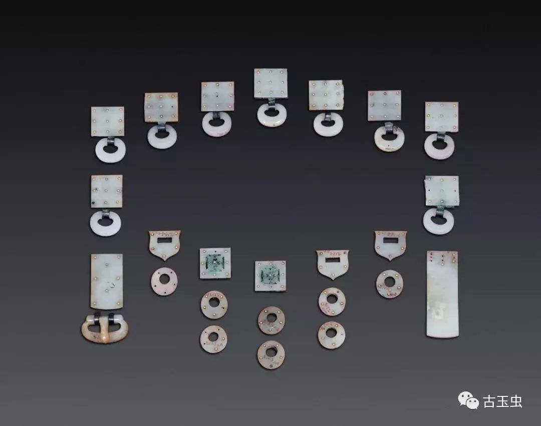 在品种方面,实用器增多,羽觞、长杯、牛头杯、钵、单柄杯、碗等,实用饰品玉梳子、玉梳背、粉盒等,饰件玉带板、玉钗头镶件、玉镯、玉兽、玉鸟等,还有玉册(上海博物馆、陕西省博物馆均有收藏)。
