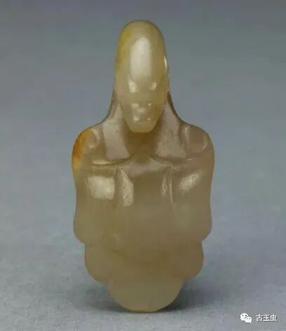 例如白玉胡人舞蹈絝尾,首先是按照人物舞蹈形体“铲”周围的地,由外向里成斜面,具有浮雕感,突出人物,细部都用阴线刻划,绸带用长阴线,表示飘动的轻薄的质感,身体各部位的平行短阴线表示向背阴阳面,长袍下的较长的细阴线可以看出与地圆毯上的短阴线是起装饰作用,从而可以看出阴线的巧妙应用。