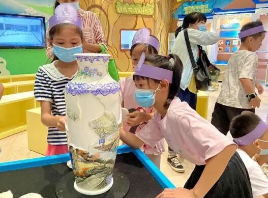 “穿越小达人·瓷画欣赏”活动引导孩子们在“珠山逸韵——景德镇近代文人瓷画”特展中仔细观察,思考,简单互动,寻找并欣赏代表性文物,在瓷器上欣赏中国传统绘画之美。