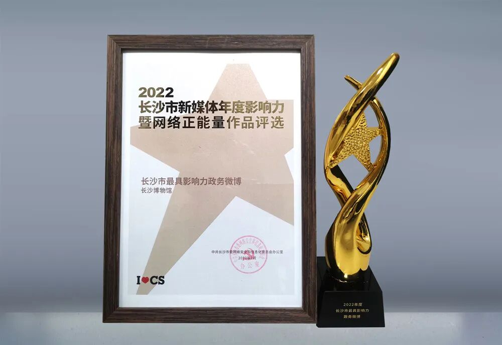 本次评选活动由中共长沙市委宣传部指导,中共长沙市委网信办、长沙市文明办、长沙市新媒体协会、长沙市网络主播协会主办,星辰在线(长沙发布)承办,征集、评选、推介一批网民认可、社会认同、影响广泛的政务新媒体、正能量自媒体、网络传播案例、优秀新媒体作品、网络文明传播先进单位以及网络正能量个人。本次活动共1523个对象入围,1800多万人次参与公众比心,参评对象规模空前。其中,长沙博物馆官方微博入选2022年度“长沙市最具影响力政务微博”。