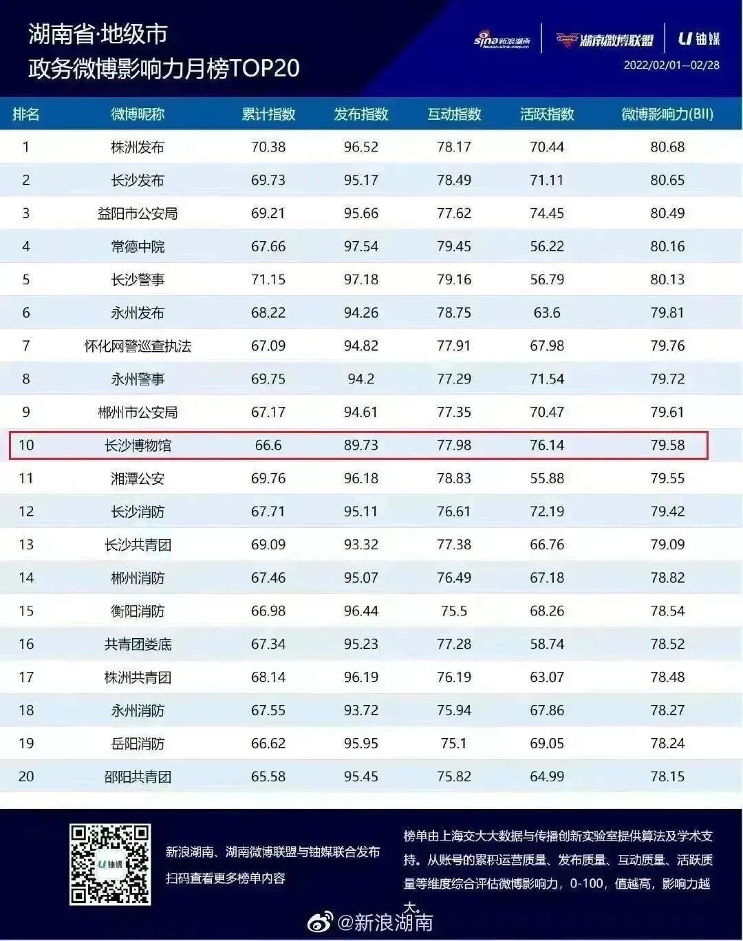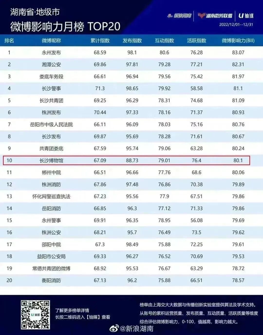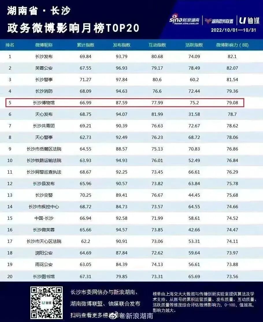 还先后9次登上湖南省微博影响力月榜TOP20榜单及荣获2022年度创新应用与传播优秀微博。