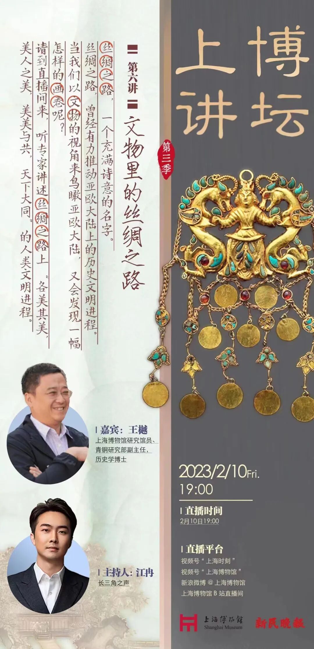 上海博物馆与新民晚报联合打造的公益文化品牌——“上博讲坛”,是一个汇聚上博英才、文博大家的文化传播平台。