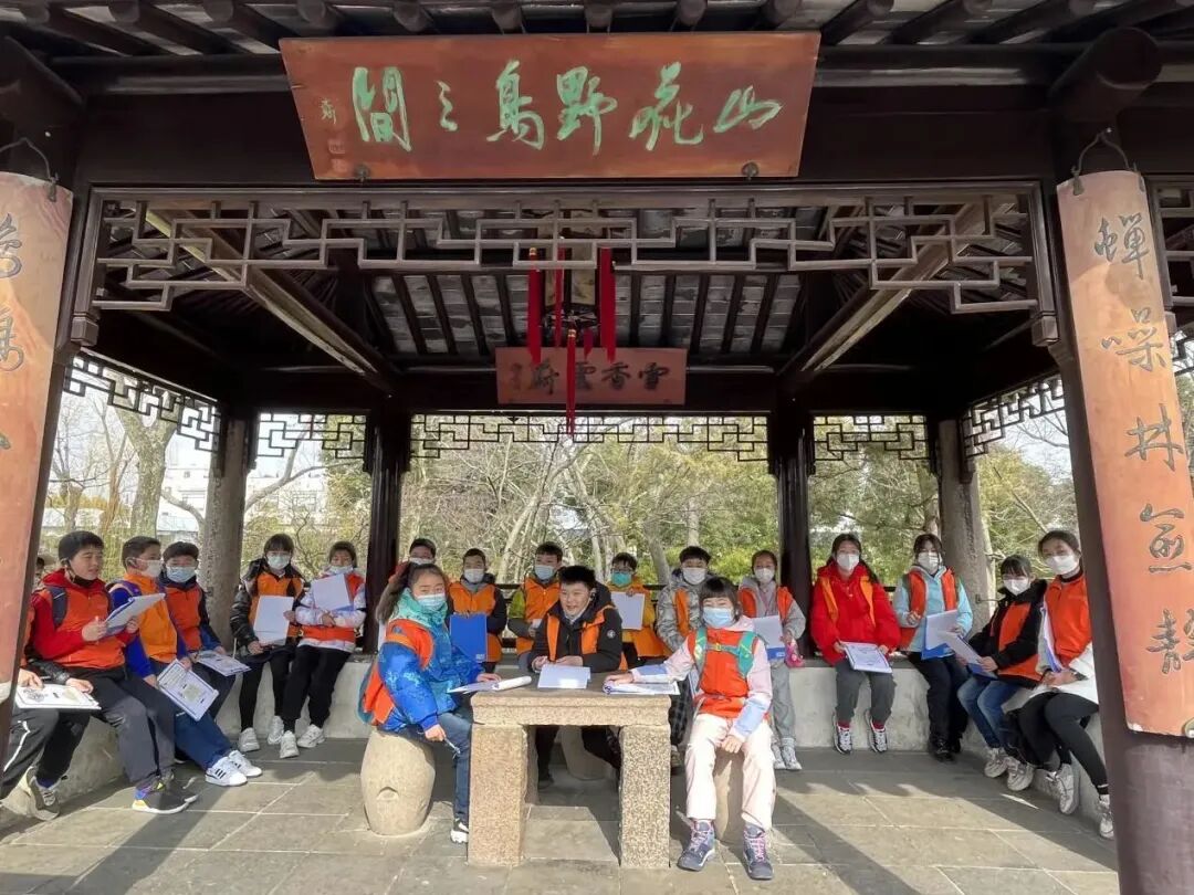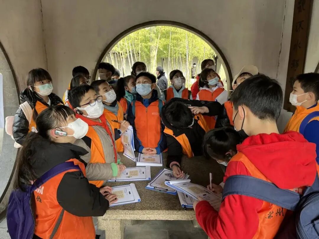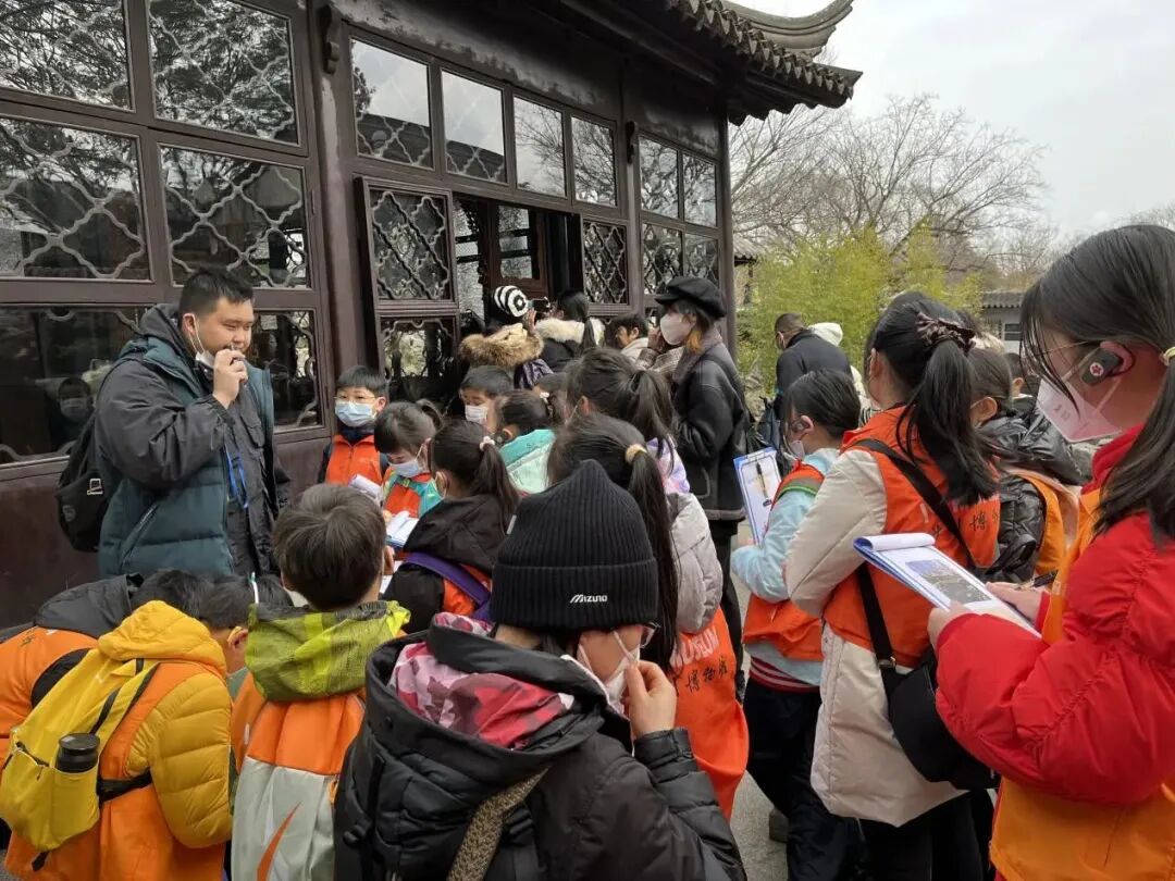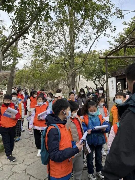 上午,在带队老师生动有趣的讲解下,整个拙政园的户外游览进展得非常顺利,孩子们也陶醉于山水楼阁之间,手捧任务书,一边听讲,一边记录,非常投入。