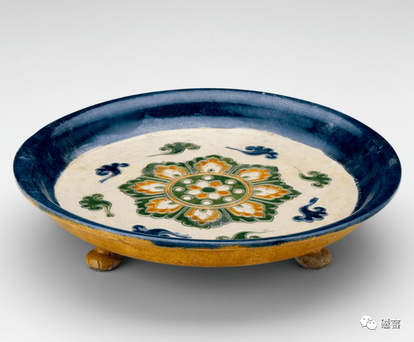 唐 三彩宝相花纹三足盘 美国芝加哥博物馆藏