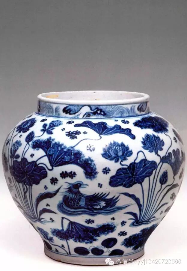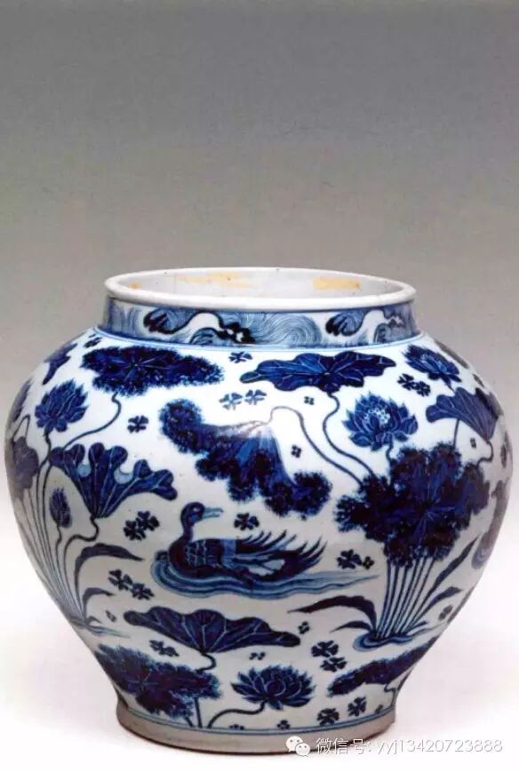 青花莲池鸳鸯纹罐 元 高30.5厘米 口径20.9厘米 足径19.5厘米 英国剑桥大学费兹威廉博物馆藏