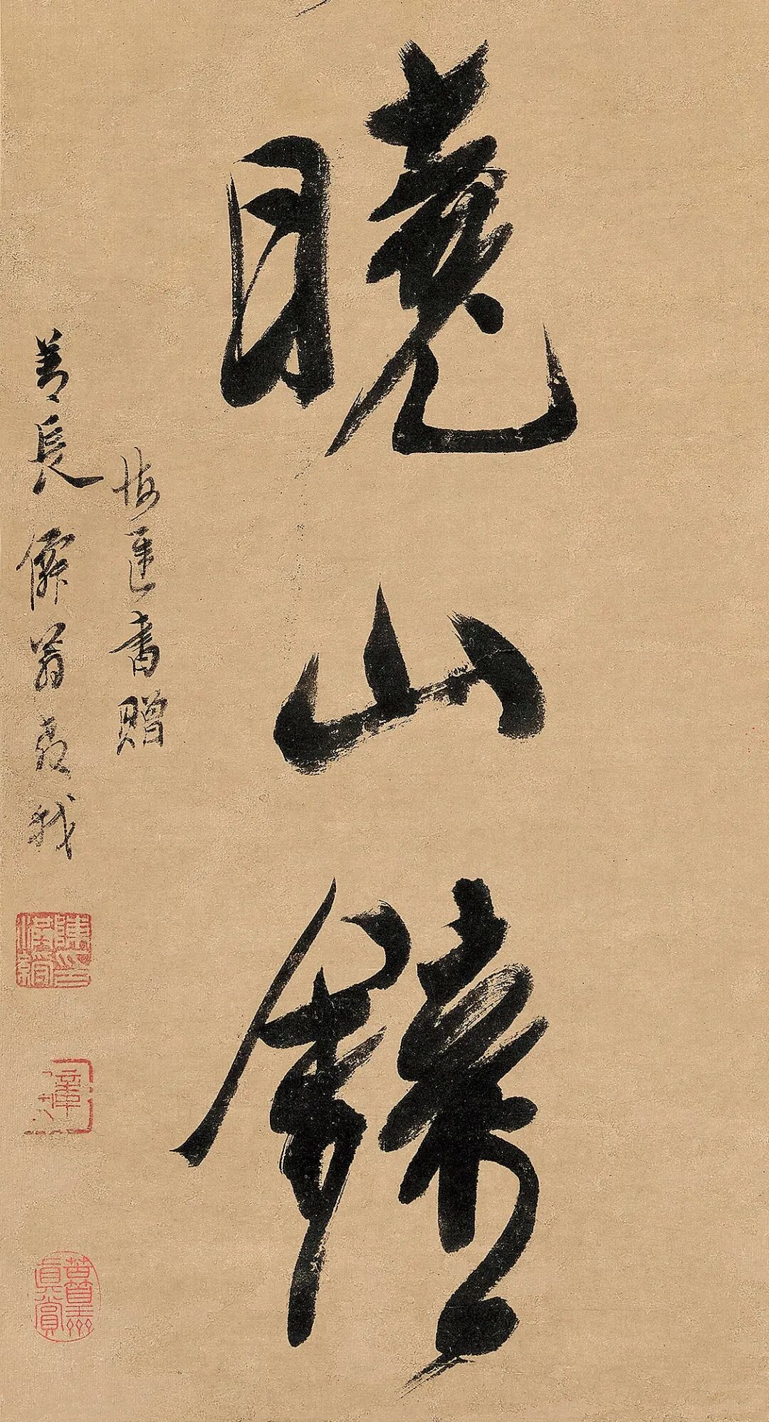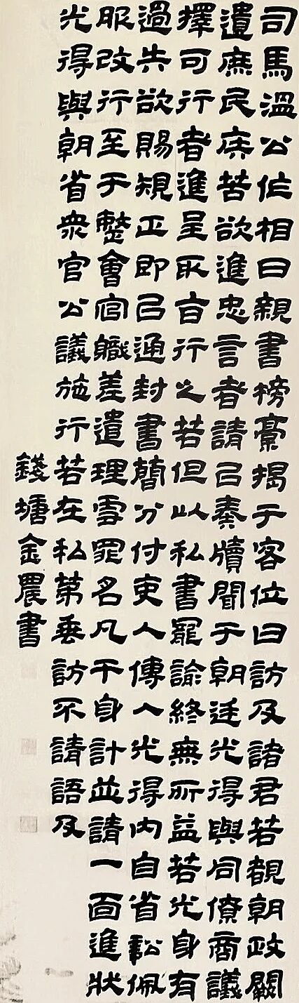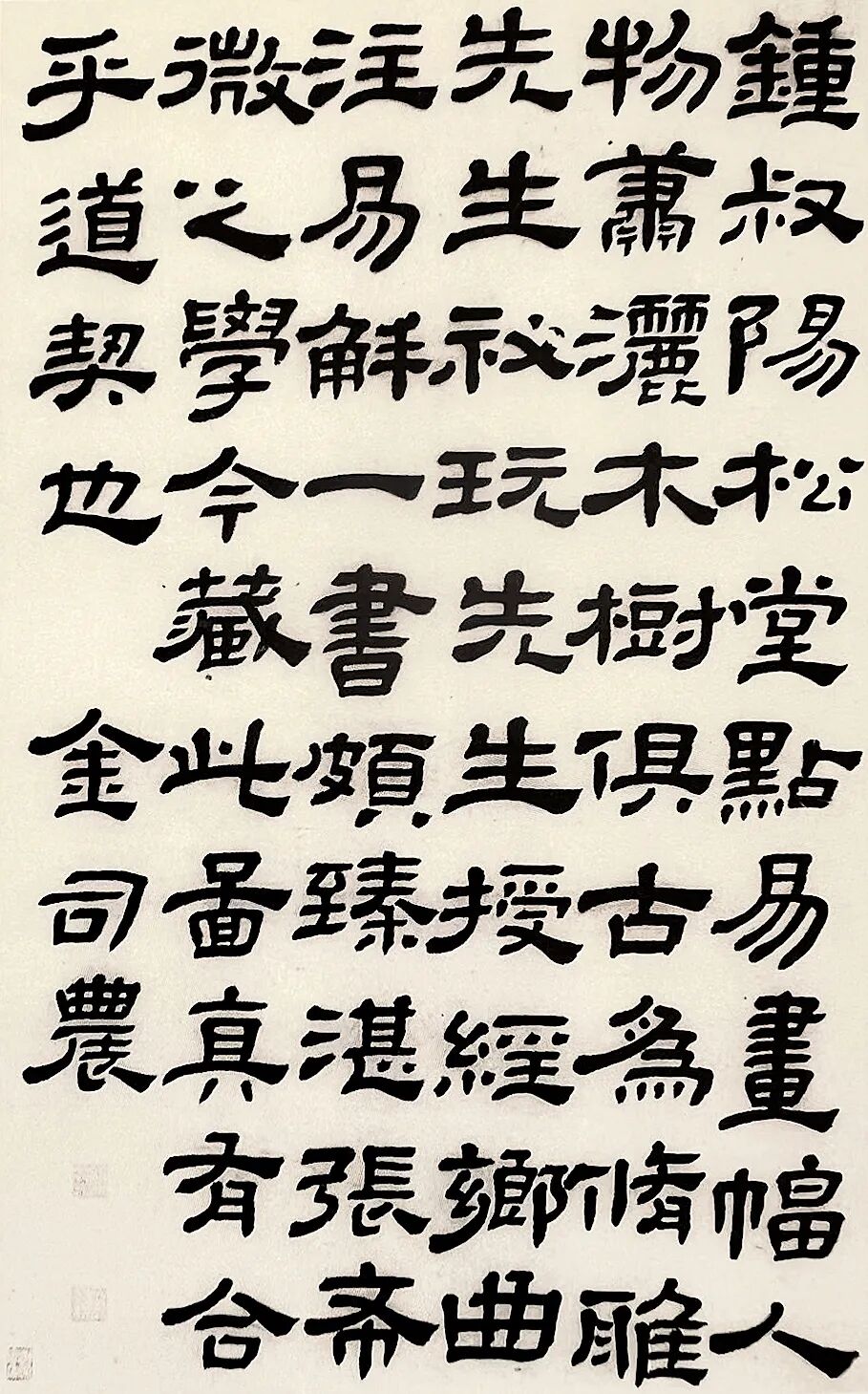 齐渊编《金农书画编年图目》下,第73页,人民美术出版社,2007年。1.娄寿碑,又名“玄儒先生娄寿碑”。东汉熹平三年(174)正月刻,旧在湖北襄阳,历来有名,原石早佚,有宋拓本行于世。碑为隶书,字体方正。3.戴培之(清道光间),名植,江苏镇江人,字培之、芝农,斋名听鹂馆、翰墨轩,富收藏,精鉴别。所藏书画多明清佳制,上海博物馆有其藏品多件。4.张可园即张权(1862-1930),张之洞之子。字君立,号圣可,晚号可园、柳卿、孙卿、均公。直隶(今河北)南皮人。光绪十七年(1891)举人,光绪二十四年(1898)进士,签分户部任职。工书画,精鉴赏收藏,书画甚丰。5.朱棠,字芾甘,号勤荪、近生,浙江吴兴人,张大千弟子,寓居上海。善山水。1941年曾在上海举办个人画展,中国美协会员。“上海朱勤荪收藏书画印”常见于所藏明清书画。金农,原名司农、字寿田,“司农”为汉代“九卿”之一的官称,而“农”则是田间的耕作者。金农21岁时拜在何焯门下就读,其于诗、画、金石考据,均在何义门家的两年里有了很大的收获。金农在何宅心无旁鸯,潜心治学,研读经史及金石碑版,文学与艺术修养都大为提高。同时,年轻的金农常得与好友厉鹗、鲍鉁、丁敬、杭世骏等交游,相互酬唱,亦受益匪浅。自三十岁始,金农开始了“足迹半天下”的“行万里路”之行。之前的金农大多数都是往来于扬州和杭州之间,不断地寻觅其艺术知音,更期盼着展露才情,但早岁的诗名并没为其赢得“际遇”,或许是胸中的干云之志,利禄之念,似是淡化。三十九岁时,由于受泽州陈幼安学士之邀,决定将作山西之途。在此远行之前,北游之始,其本人将“金司农”更名为金农;字也由“寿田”更为“寿门”。金农隶书大致分为四个阶段,其一为三十九岁之前,此时期金农已经于隶书用功多时,遍临诸碑,虽然其时郑簠隶书风靡扬州,但未被时流所囿。其风格以乙瑛碑为主,字型方扁,用墨浓重,提按分明。其二为三十九岁前后至五十岁之间,多以《华山庙碑》为主,且隶书中多见草法,落笔厚重时见飞白,结体紧凑,点画苍劲灵动。第三个阶段是其五十岁至七十岁之间,此时期结体用笔皆呈现出方整之态,横竖笔画粗细一致,隶意渐弱,整体有肃穆苍浑、厚重凝练风格;第四阶段为七十岁之后,即为明显的漆书风格。本作金农节临汉隶《娄寿碑》款书“农”,钤印为“金司农印”、“金氏寿门”,可知为金农三十九岁左右所书。厚实朴茂,浓墨重书,字型扁方,用笔每多偏锋,波磔雁尾跃然有动势,在沉稳古厚之中显出悠雅自若的风神气韵。金农初期隶书并不多见,类似风格如浙江省博物馆藏《隶书节录乙瑛碑》、厦门华侨艺术博物馆藏《隶书南齐褚先生传》,天津市艺术博物馆藏《隶书司马温公语》,辽宁省大连市文物书店藏《隶书钟书阳点易》,仅见数件,故而此作节临汉隶《娄寿碑》尤显可贵。![]()