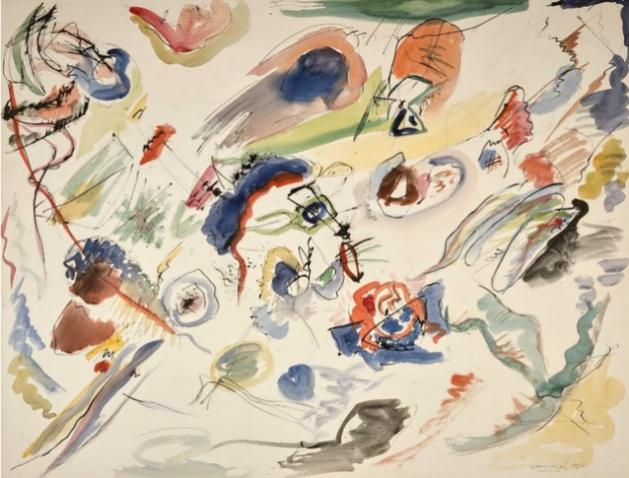这幅作品的诞生充满戏剧性。康定斯基在自己画室里偶尔一瞥,看到了一幅无比精彩的画作,仔细观察才发现是自己的一幅画挂反了,当画作摆正了,画面那种震撼心灵的感觉却消失了。康定斯基突然意识到,越是抽象、不具体,越能给人带来清晰、直接、强烈的感受。