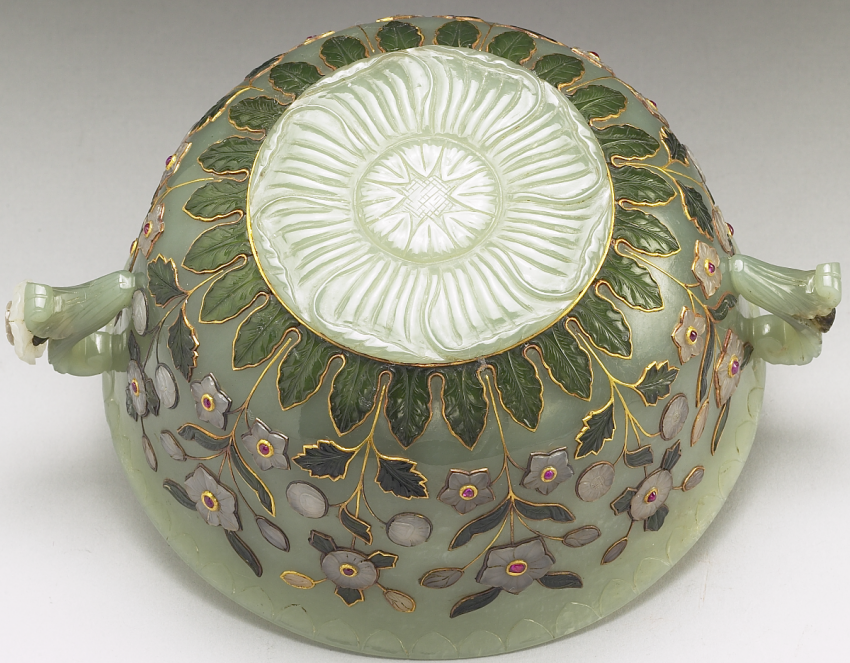 清 印度平口双柄盖碧玉碗(底部) 台北故宫博物院馆藏
