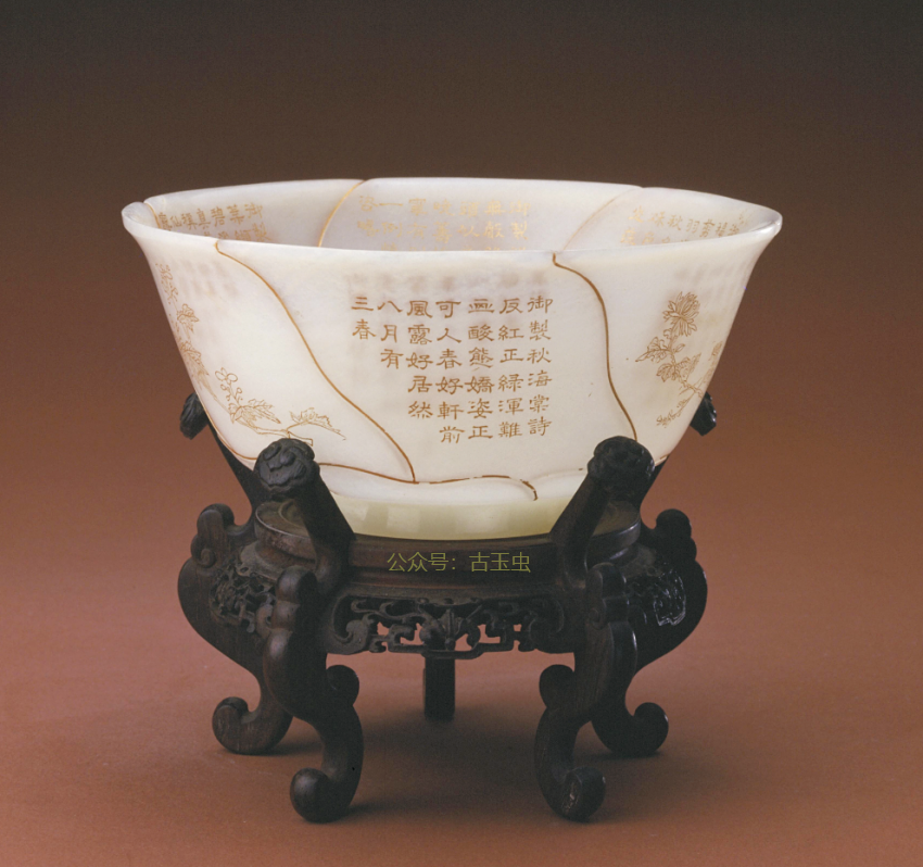 清 白玉填金花卉诗句葵瓣碗 北京故宫博物院馆藏