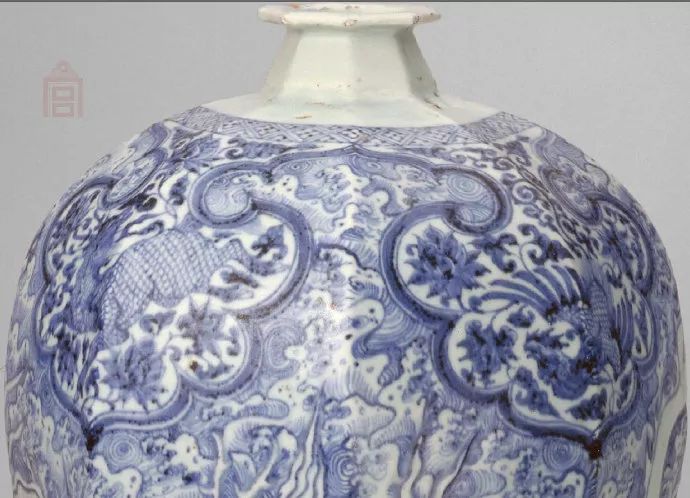 元代青花的装饰借鉴了一些元代丝织品图案,大量使用的垂云纹和如意云头纹便是由披肩演变而成。