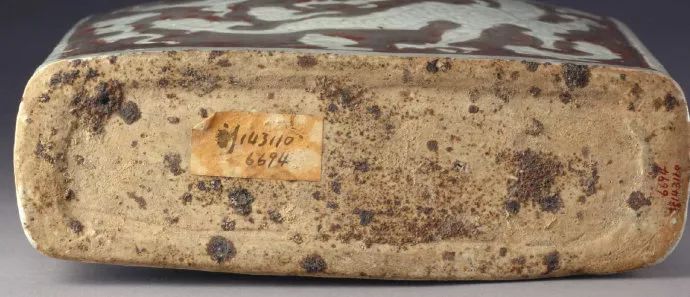 此器形制浑厚饱满,纹饰繁密而有气势,所绘龙纹头小,颈细,身体细长,三爪动感较强,形象凶猛,是典型的元代龙纹式样。