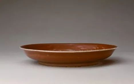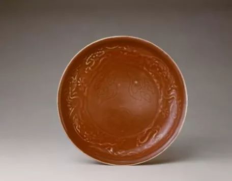 元代红釉瓷器传世很少,此盘通体红釉纯然一色,且印花清晰,是件难得的佳作。
