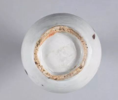 此件梅瓶在天蓝色地釉上施紫红色斑块,犹如片片彩霞,爽心悦目。这种装饰完全出自工匠施釉时的随意涂洒,烧成后却呈现出诗意的画面。