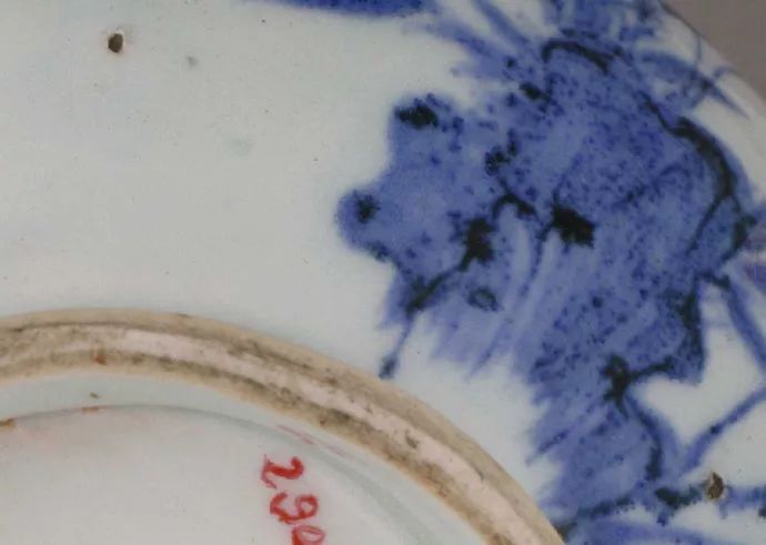 此盘属于高温钴蓝釉瓷器。这种传世元代蓝釉白龙纹盘见诸发表的共有4件,除故宫博物院收藏的这一件以外,日本出光美术馆、大阪市立东洋陶瓷美术馆和英国伦敦大维德基金会各收藏1件。