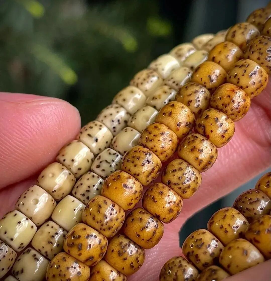 因为星月菩提,每一颗的密度都不可能相同,就算是同树籽,密度也会有差别,所以色差是很正常的,但是花脸,是属于出现在同一颗籽上的色差,那么花脸就要寻找一下原因了。![]()